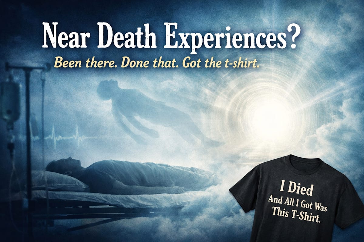 I didn’t float above my body. I didn’t see a tunnel full of departed relatives waving cheerfully like it was a family reunion. No choir. No booming voice asking awkward questions about my life choices. And sadly, no cosmic slideshow explaining the universe in bullet points.