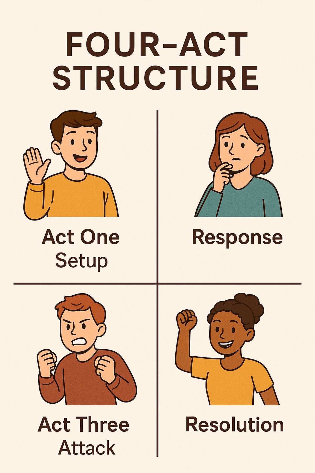 Whether you’re outlining your first draft or trying to fix a messy one, the four-act structure can give you the clarity and momentum your story needs. It’s not about following rules, it’s about finding rhythm. And for many writers, four acts offer the right beat to tell their best story.